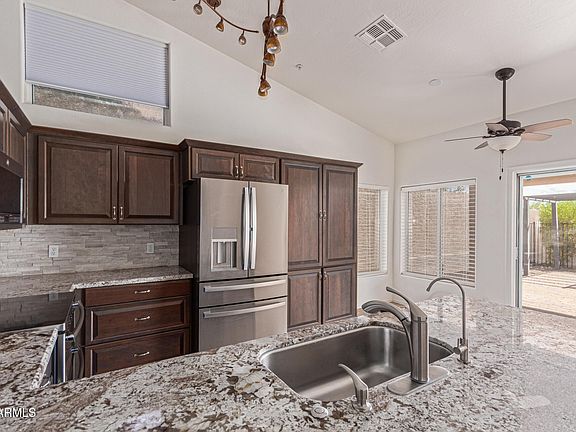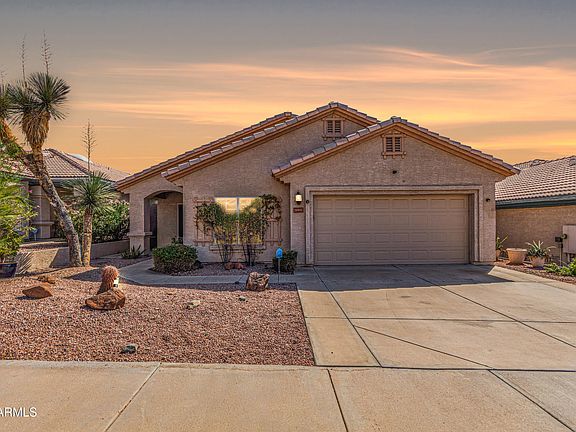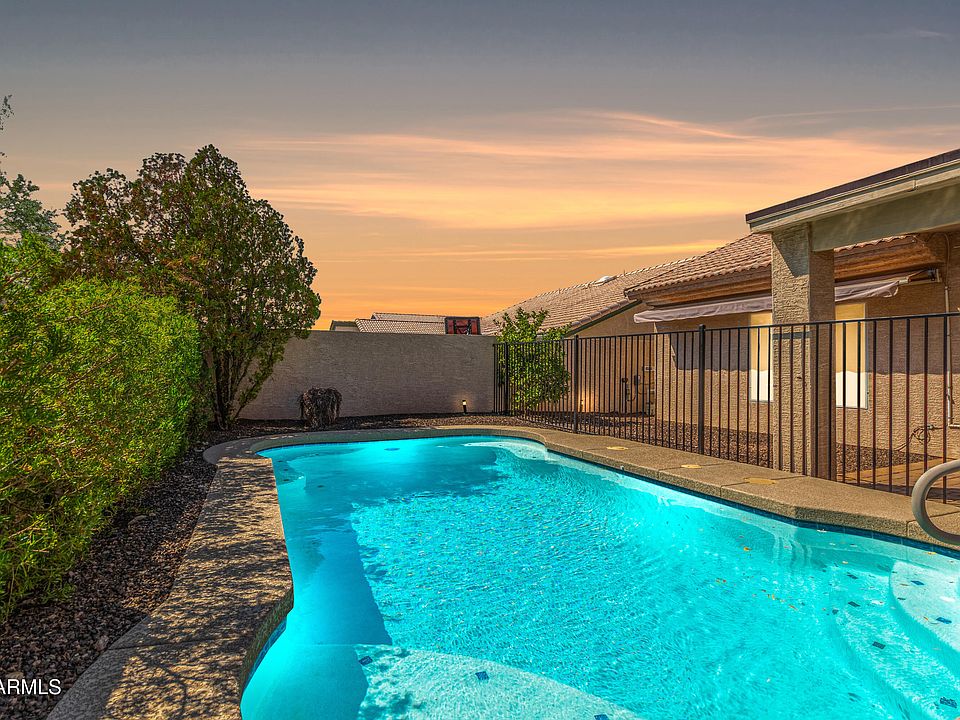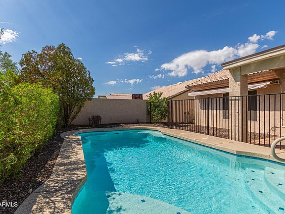 Beautifully upgraded 3-bedroom home radiates style and comfort at every turn! Airy living room and the desirable great room, bathed in natural light, are perfect for both everyday living and entertaining. Features like tile flooring, fresh paint, fire sprinklers, ceiling fans, and archways enrich the overall ambiance. Well-appointed kitchen offers track lighting, plenty of cabinets with crown moulding, tile backsplash, stainless steel appliances, granite counters, and a peninsula with a breakfast bar. Large main retreat boasts an ensuite with dual sinks and a walk-in closet. A washer and dryer are included for added convenience. Venture outside to your private oasis, complete with a covered patio, pergola, and sparkling pool, ideal for year-round enjoyment. Don't miss this incredible gem!
