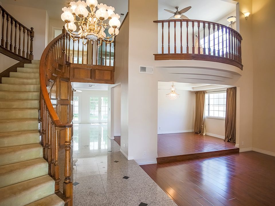 Great open floor plan with 4 bedrooms, 3 1/2 baths, 2 story house on a quiet street located in a highly desirable area of Granada Hills. Open kitchen area with granite counter tops, tile flooring in entrance, kitchen and family room. Featuring wood floors in living room and dining room, downstairs is a powder room 1/2 bath for guests. Spacious master suite w/large master bath with dual sink vanity and walk-in closet upstairs. There are also three good size bedroom upstairs. It has an amazing loft area perfect for a play area or home office overlooking the living room. Exterior of the house is freshly painted, Tenant responsible for gas, water and electric. Must have good credit.