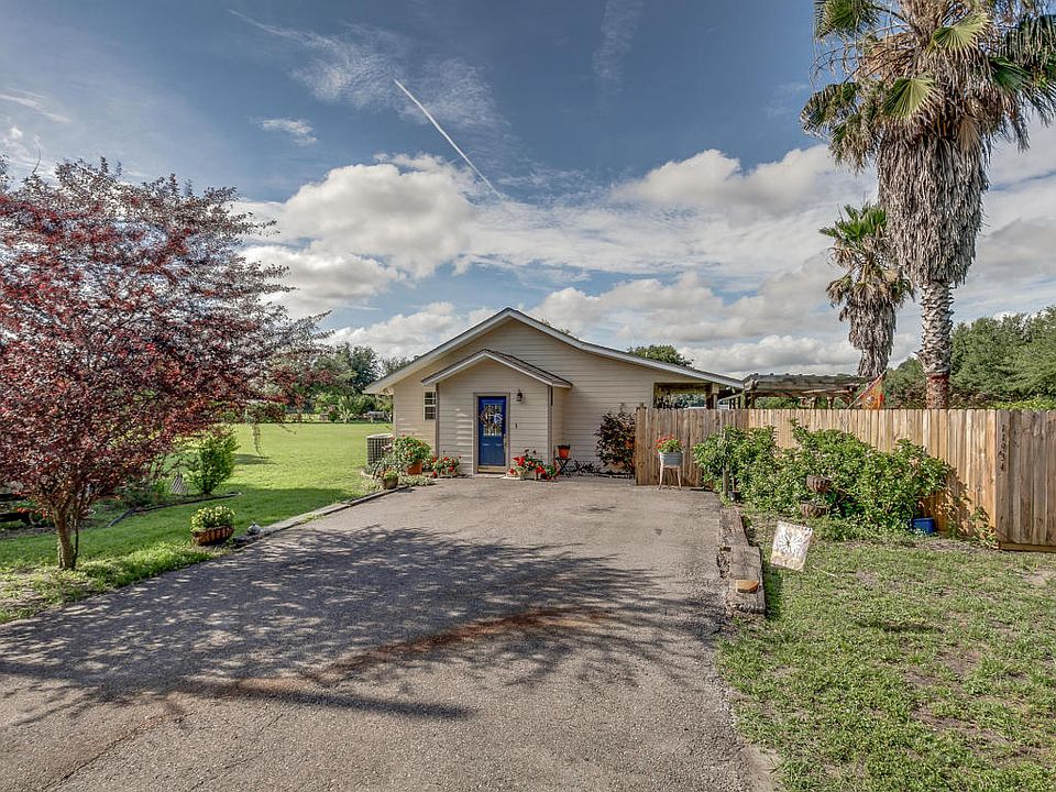 Lovely home situated on a 1 acre lot with electronic gate access, in-ground swimming pool, privacy fence, Pergola covered paver patio, and is even zoned for horses! This home was built in 2000 and features neutral decor, tile flooring and laminate flooring, an open kitchen with breakfast bar, dining area and living area, French doors to paver patio and pool, vaulted ceilings, interior laundry room and more... There is also a detached equipment/storage shed. RV Hook-up. Security system. Transferable termite bond. I can''t wait for you to see this property!