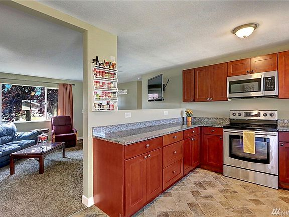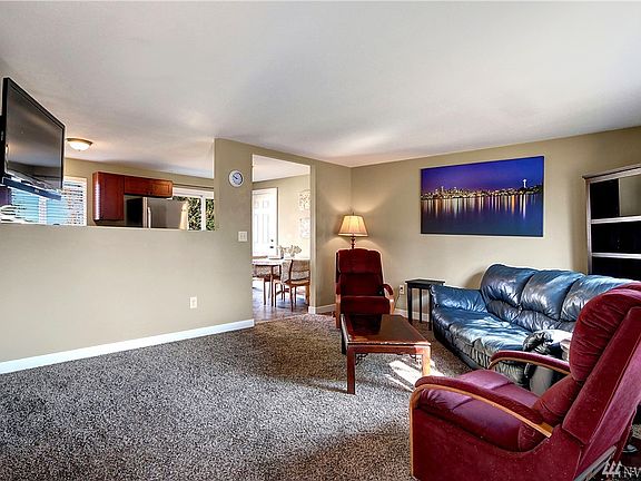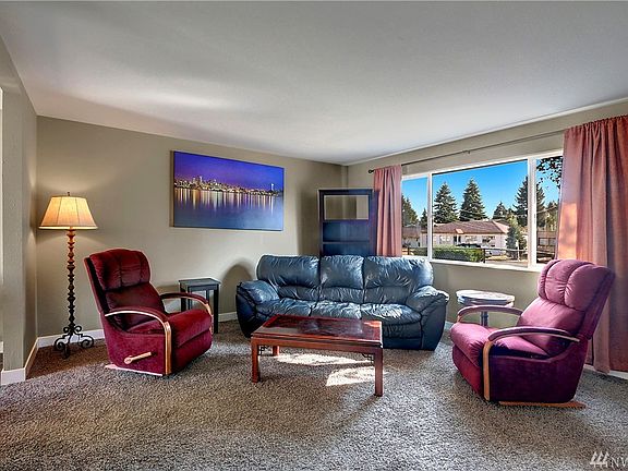 Beautifully remodeled rambler on large corner lot with peak-a-boo views of the peninsula. Entertain guests in this open floor plan & spacious private back patio/deck. Fully fenced yard w/ delicious fruit trees & room for gardening! Master suite w/ master bath & large walk-in closet. Kitchen boasts custom cabinetry, stainless steel appliances & granite countertops. Remodel completed 2 years ago w/ new flooring, paint, doors, windows, roof, furnace & water heater! Easy access to Airport & Seattle.