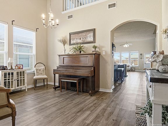 Showings to start 10/22. Welcome to 11935 Curtis Hill, San Antonio, TX 78245 - a spacious family home in the desirable Laura Heights gated community. This beautifully maintained 4-bedroom, 2.5-bath home offers comfort, space, and convenience for growing families. The primary suite is located downstairs, featuring a generous bedroom, large walk-in closet, and a spa-like ensuite with a double vanity, garden soaking tub, and separate shower. The open-concept layout highlights a bright island kitchen with ample counter space that flows seamlessly into the dining and living areas - perfect for family gatherings or entertaining guests. Soaring high ceilings in the great room create an airy, inviting feel, while the upstairs game room/living area overlooks the entry room and great room, offering a great secondary retreat for kids or guests. Outside, you'll find that the location couldn't be better - directly across the street from the community pool and playground, giving your family premier access to neighborhood amenities. The roof is just 3 years old, upgraded with laminated GAF shingles, providing peace of mind for years to come.The back yard is an inviting oasis where you can enjoy your morning cup of coffee or entertain your guest on the covered patio. With a great layout, prime location, and plenty of room to grow, this home in Laura Heights delivers everything today's family is looking for - comfort, convenience, and community.