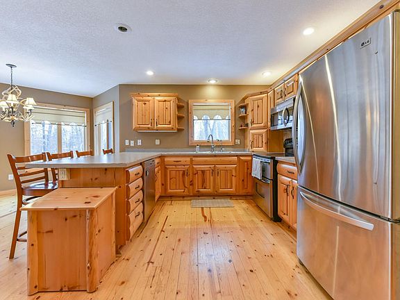 Don't miss this five bedroom, three bath home nicely situated on a 5+ acre wooded lot. Property is nestled between Lake Edward, Markee Lake, and Lougee Lake. Home features an open floor plan, custom log wet bar, log interior in basement, custom log railing, vaulted wood ceilings, tiled floors, walk-in closet, two gorgeous fireplaces, two outdoor fire pits, large deck overlooking your private backyard, shed, deeded ingress/egress access to Lougee Lake and a guest house. Don't miss this incredible home.