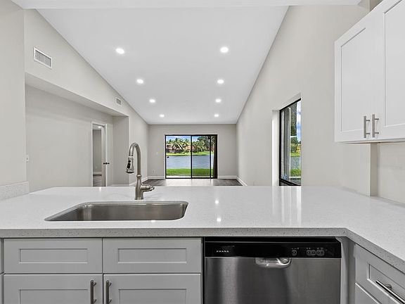 Significantly updated 3/2 FEE-SIMPLE villa located in VILLAGE AT LAKE PINE II in Davie. This 1,548 SQFT 1-story corner unit features: 2023 kitchen w/ white shaker cabinets/quartz countertop/SS appliances, 2017 roof, 2018 HVAC, 2017 water heater, updated baths, recessed lighting, new waterproof vinyl flooring, vaulted ceilings, accordion shutters, fresh interior paint, full size W/D & more! Enjoy peaceful lake views from living and primary bedroom. Quiet community that offers privacy & easy access to major highways, shopping, restaurants & great schools. Very low HOA fee covers: community pool/tennis/basketball/clubhouse, roof repairs, fence, landscaping, exterior painting. Since this is a fee-simple property, Conventional 3-5% down, FHA & VA are all welcome! Best & Final due by 10/8 @ 10am