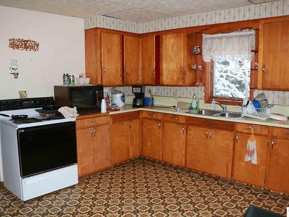 Simple country living! This bungalow style home has 3 bedrooms, a full bath, small front entry, living room with lots of natural light flowing in, eat-in kitchen, back entry, and full block basement. One of the bedrooms is upstairs along with an unfinished attic space. Home has a deck on the front with a ramp for access. There are many outbuildings on the 40 acre parcel including a 40 x 100 pole building, a 24 x 40 garage and a couple smaller buildings. 2 small creeks run through the property as well. All around great property!