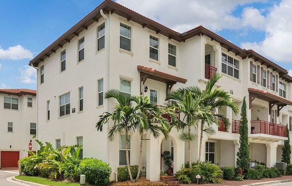 Gorgeous CORNER unit tri-level townhome in highly desired neighborhood! Unit is immaculate with tile throughout main living area and all wood stairs. Extra windows in all living areas allows plenty of light! Soaring ceilings for a spacious feeling. Kitchen with 42 inch wood cabinets, granite countertops and stainless steel appliances. One full bedroom and bathroom on 1st floor, one bedroom and full bath 2nd floor, main living area on 2nd floor, and one bedroom and full bath 3rd floor with 2 spacious closets. Master bathroom has dual vanities, Roman tub and separate shower. Open balcony off the main living area. Separate laundry room. Hurricane Impact windows, 2 Car garage. Built 2014, gated community- clubhouse, gym, pool and totlot, low HOA includes cable, all ages and pets welcome!