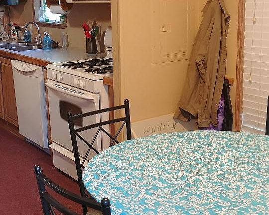This home is sold AS-IS and where is. Financing through the buyer. No renting and NO rent-to-own. This cute little home is set off the road with a great coverage of trees for privacy. With 3 large bedrooms, and 2 bathrooms. The master bath has been renovated to add in the laundry. Creating a large storage closet right when you walk in, off the entry room with enough space for a small dinning table. Walking into a kitchen with a large counter that sweeps around into an "island" like extension and cupboards all the way around. The kitchen also includes a nice large pantry with shelves all the way up and updated appliances. The kitchen opens into a large dinning/living room. Enough space for a large 8 to 10 person table. Also enough space for a large sectional couch or 2 pieces. The master bedroom is off the living area and so is the back porch through a set of sliding french doors. The other 2 bedrooms and 2nd bath are to the far end of the house. Nice big bedrooms with double door closets. The garage has room on one side to park 2 vehicles and electric. To the other side a large room that has been converted into the "Man Cave" with a wood stove, electrical hook up, and even cable. lots of open yard space and a garden area. Flower beds all the way around the house that have been planted and maintained every year.