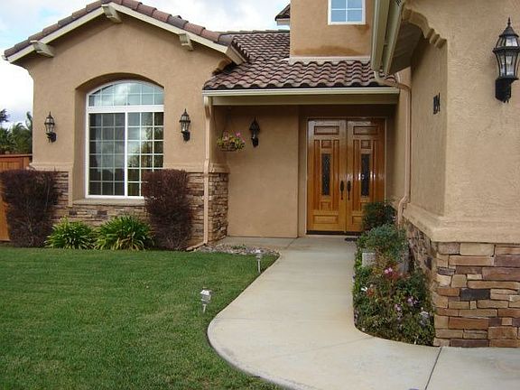 Beautiful 5 bedroom and 3 full bath home with a bedroom & full bath on the main floor. This 2,805 sq ft home with a 4 car attached garage has a beautiful pool and jacuzzi. No HOA, or Mello Roos. The kitchen is upgraded with granite counters and a built-in stainless steel refrigerator. Master bedroom on the second floor with two large closets, one a walk-in. Walking distance to Live Oak Elem and Potter Jr High. RV parking on your 16' wide private driveway. Please see comments with the pictures...