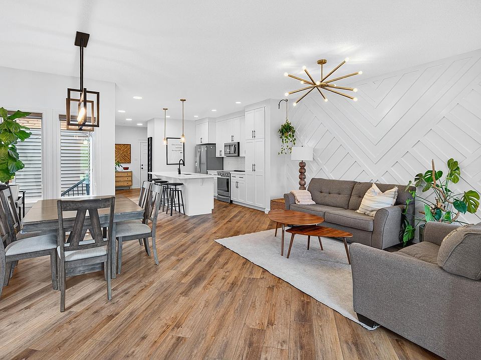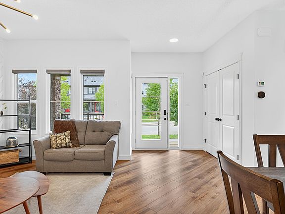 Experience modern elegance in this meticulously maintained 1,800 sq ft home. Spacious and thoughtfully designed, it offers an open-concept layout with sleek quartz counters, a stylish backsplash, and a large island perfect for hosting. Oversized patio doors create seamless indoor-outdoor living, opening to a low-maintenance yard ideal for relaxing or entertaining. At the rear, enjoy direct access to the basement, a double attached garage, and a convenient two-piece powder room. Upstairs showcases a versatile bonus room, laundry area, two additional bedrooms, and a generous primary suite with dual sinks and a walk-in closet. Perfectly located, just a 2-minute walk to Joan Carr School and minutes from shops, dining, daycare, and over 19 km of scenic trails. Central A/C keeps you cool all summer, and this move-in-ready home offers the perfect blend of modern comfort, convenience, and community for a vibrant lifestyle.