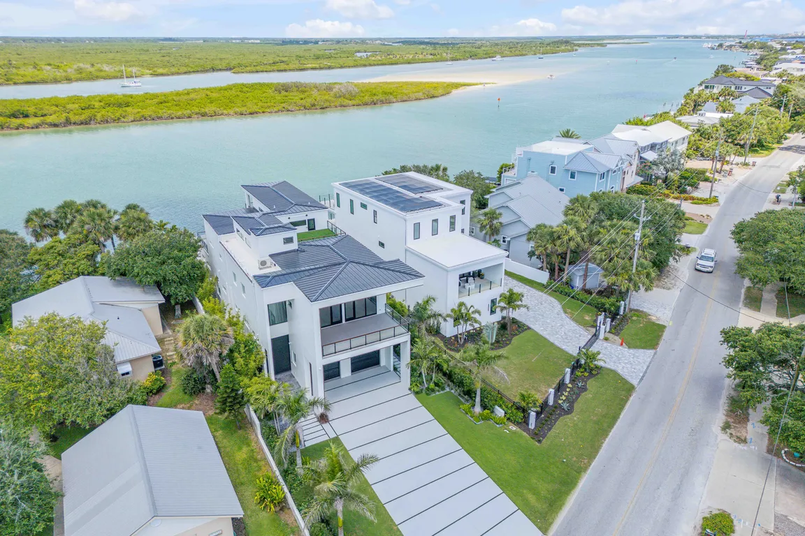 Year 2024 New Construction Where Coastal Elegance Meets Architectural Mastery in New Smyrna Beach. Intracoastal Waterway deep water dock home with modern luxury on an island just a block to the Atlantic Ocean beaches. This extraordinary 5,500-square-foot under air, 5-bedroom, 5-bathroom estate, complemented by 2 half baths, represents the pinnacle of ...