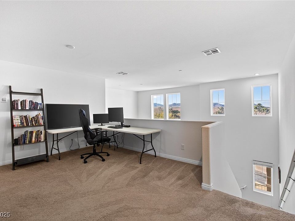 PANORAMIC VIEWS in this 2000sf, three-story townhome with a 2-car garage, built in 2019! 600–650 sq. ft. of true FLEX SPACE across the oversized third-floor loft and the expansive first-floor flex room—perfect for multigenerational living, work-from-home setups, media rooms, fitness, or creative space. The third-floor loft features multiple windows framing beautiful mountain views. The second-floor great room impresses with dramatic ceilings, abundant natural light, and open flow into the dining area and kitchen. The primary bedroom is located on this level for convenient main-floor living. The first floor offers a completely usable retreat with a large den/room, bathroom access, laundry, park views, and direct garage entry. Outside, enjoy tree-lined walking paths, a pet park, playgrounds, and peaceful community spaces. The covered balcony is the perfect spot for morning coffee or evening sunsets with panoramic views. 89002 location near the 95 & Wagonwheel. Come and see!