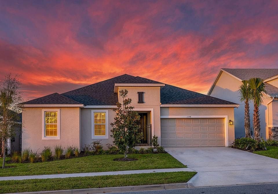 Discover the enchantment of The Lakeside Community! This luxurious single-story home, crafted in 2022, provides the perfect setting for a family. Boasting four spacious bedrooms, three full baths, and a half bath, this residence is designed for comfort and style. The focal point of the home is an expansive open-concept gathering room, a welcoming dining area, and a well-appointed kitchen, all bathed in natural light. The abundant light is enhanced by additional lighting in the great room, dining space, and Master bedroom, courtesy of the expansive OVER-SIZED SLIDING GLASS DOORS leading to the covered lanai. For the culinary enthusiast, the gourmet kitchen beckons with its sizable island and convenient walk-in pantry. The thoughtfully designed split plan ensures privacy, with the OWNER'S SUITE featuring an expansive EN-SUITE BATHROOM complete with a luxurious SPA-LIKE SHOWER, a soaking tub, dual sink vanity, and an oversized walk-in closet in the master bedroom. Relax on the spacious Extended LANAI, offering views of lush greenery and conveniently situated to the pool and playground. The tandem-style 3-car garage ensures ample parking, while the absence of rear neighbors adds an extra layer of privacy. Nestled in the sought-after Apopka area, just northwest of Orlando, and with swift access to the 429 expressway, this newly gated, waterfront community epitomizes a premium lifestyle. Revel in direct access to the pristine waters of Marshall Lake, take advantage of resort-style amenities, and enjoy a community pool—a truly exceptional living experience for the perfect family.
