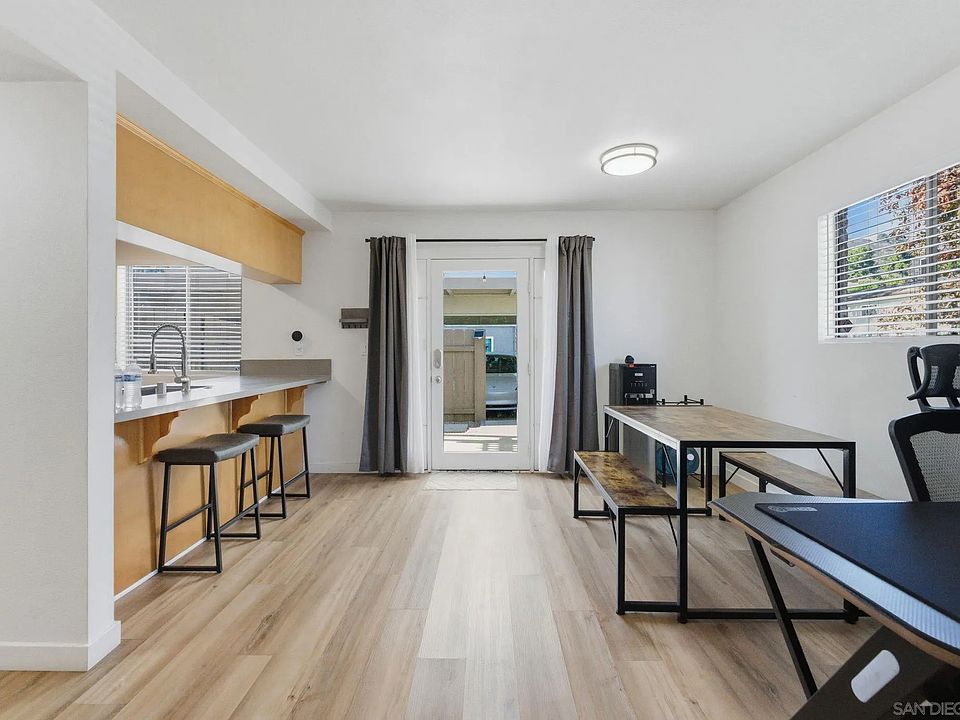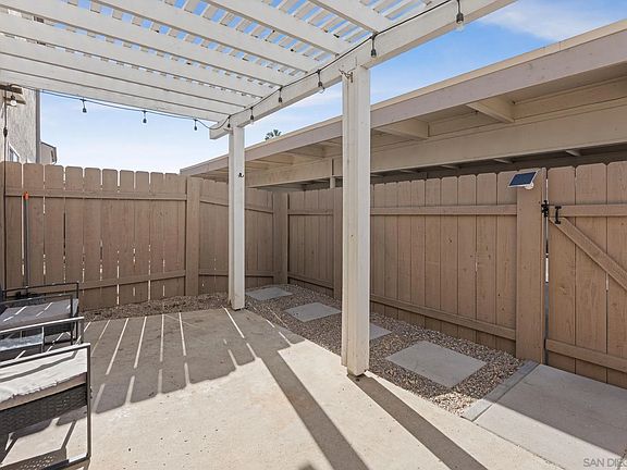 TOWNHOME W/ PRIVATE PATIO, DUAL BALCONIES 2 PARKING SPACES! Welcome to 11941 Royal Rd #A Perfectly blends modern style, comfort, and everyday convenience. From the moment you step inside, you’ll feel the difference. Open, airy living space set the tone for relaxed living and effortless entertaining. The sleek, contemporary kitchen is the heart of the home, featuring stainless steel appliances, modern cabinetry, beautiful countertops, and a breakfast bar that flows seamlessly into the dining and living areas. Step outside to your private outdoor retreat, complete with a covered pergola-style patio, perfect for grilling, entertaining, or simply unwinding under the San Diego sky. Upstairs, you’ll find three generously sized bedrooms with plush carpeting, including two bedrooms with private balcony access. The bathrooms have been remodeled with modern vanities, upgraded fixtures, and elegant tile finishes that elevate the space. Additionally central A/C and heat, in-unit laundry, two assigned covered parking spaces, a storage shed, and a well-maintained community that adds to the overall ease of living. Conveniently located just minutes from shopping, dining, schools, and freeway access, this home truly checks every box. Stylish, move-in ready, and designed for modern living, this is one you don’t want to miss.
