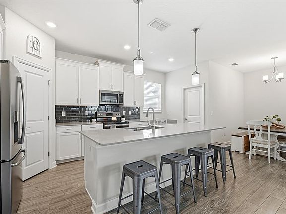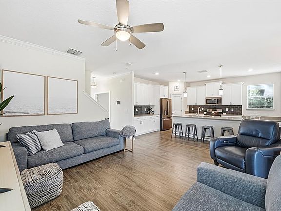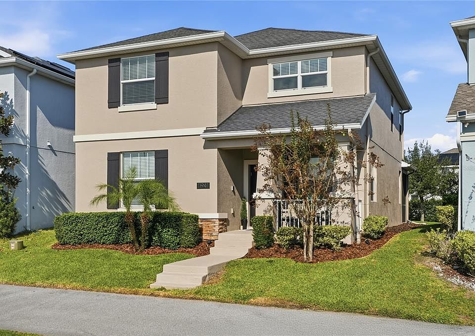 Welcome to 11941 Storey Time Drive, a home filled with natural light, thoughtful upgrades, and a sense of comfort you feel the moment you walk in. This five bedroom, three and a half bath layout gives you 2,638 square feet of smart space, including a Downstairs Bedroom with a Full Bath, a Flex Room that works as an Office, a dedicated Dining Area, an upstairs Loft, PLUS a screened Lanai and Owned Vivint Security System. Featuring an Oversized Paver Driveway that fits six cars comfortably and compliments the two car garage. The exterior was recently updated with elastomeric paint, and the home includes Leased Solar Panels ($80/mo.), a Hybrid Water Heater, and Double Pane Windows to help keep utility costs manageable. This is a Smart Home with wireless access to the garage door, front door, light switches, and HVAC; making everyday life feel easier and more connected. Inside, natural light pours across the Wood-Look Plank Tile and highlights the Quartz counters, 42-inch cabinetry, Stainless Steel Appliances, and Crown Molding in the primary suite and main living areas. Every switch features a dedicated ceiling light switch for added convenience. The Primary Suite offers a quiet retreat with a large walk in closet, linen closet, and an en-suite bath that includes a standup shower and corner garden tub. This home has been well cared for, lived in with love, and it shows in every detail. Storey Park continues to be one of the most requested neighborhoods in the Lake Nona area for a reason. The HOA includes high-speed fiber internet, cable tv (including Disney+!), miles of walking and bike trails, two clubhouses, two pools, two fitness centers, basketball and volleyball courts, and wide green spaces. Zoned for the new Innovation High School with easy connectivity to the 517, 528, and minutes from Lake Nona, Boxi Park, Orlando International Airport, Brightline, and East Coast beaches. Schedule your private showing today!