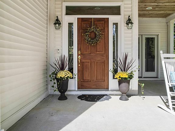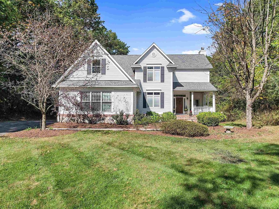 Come see this gorgeous 5 bedroom colonial on a picturesque, wooded lot that offers serene privacy and stunning natural views in every season. Once you walk inside, you will notice the upgrades in this house including transom windows above the entry and den, hardwood floors, updated kitchen with white Kraftsmaid dove tail cabinets, stone backsplash, granite counter, center island and desk area too. Huge first floor laundry off the kitchen with cabinets and closet for extra storage. The den includes a gas fireplace, French doors that open to the wrap-around porch, and plenty of windows. Large primary bedroom with spacious walk-in closet and private bath with jacuzzi tub & shower. 3 additional bedrooms upstairs with Jack and Jill bathroom and 1 bedroom with gas fireplace. Gorgeous finished walkout basement with gas fireplace in living room area, 5th bedroom with large window and connects to 3rd full bathroom with shower. 2nd kitchen in the basement and large mechanical/storage area. Other features include newer Trex deck with steps down to the patio off the walkout, newer dimensional shingle roof (tear off) in 2020, high efficiency furnace in 2016, newer landscaping, whole house generator, water softener & Simply Safe alarm system. This home blends comfort, character and nature in one exceptional package.