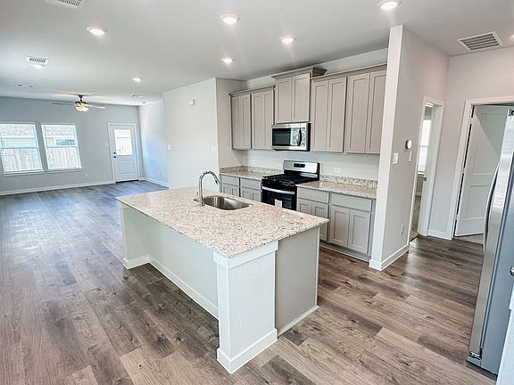 Enjoy 1,388 square feet of thoughtfully designed living space in this 3 bedroom, 2 bath home. The kitchen stands out with 42" cabinets, stainless steel appliances, and a Whirlpool 5-burner gas range. The primary suite offers a spa-like retreat with a stunning 5' tiled walk-in shower. Stay comfortable year-round with ceiling fans in both the primary bedroom and great room, and take advantage of added conveniences such as a tankless water heater, garage door opener, and blinds throughout.