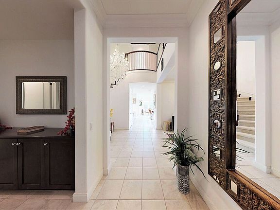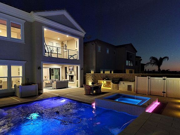 Do you desire an elegantly modern home with a gourmet open concept kitchen, a luxurious primary bedroom, and a resort-like outdoor oasis? Look no further! Conveniently located in the highly coveted 24-hour guard gated community of Bella Vista, this 6BR/6BA, 4,214 sq ft executive estate beckons attention with impeccable landscaping, a lovely fountain, and gorgeous Greek Revival architectural elements. Designed for trendy entertaining and leisurely living, the sun drenched interior emanates an upscale appearance with a beautiful curving staircase, soaring foyer ceilings with a glittering chandelier, a crisp color scheme, and an organically flowing floor plan. Gourmets and foodies will relish in the open concept gourmet kitchen featuring premium stainless-steel appliances, granite countertops, gas range, custom cabinetry, an oversized island with seating, double ovens, a contemporary glass tile backsplash, a custom-fit refrigerator, a breakfast nook, and an adjoining living room with glass stacking doors to the outdoor space. For a truly relaxed vibe inspired by the SoCal lifestyle, the glass doors completely open for a seamless indoor/outdoor living experience. Host unforgettable parties and gatherings in your fully enclosed backyard, which includes a covered patio, designer swimming pool, an infinity spa, fire pit, a custom built-in BBQ, and plenty of room for seating and dining. Blissful evenings and serene mornings are found in the upper-level primary bedroom featuring his-and-her walk-in closets, tray ceilings, access to a private balcony with unobstructed mountain and canyon views, and an attached spa-inspired en suite with a luxe soaking tub and a walk-in shower. Five additional bedrooms are abundantly sized with dedicated closets and maybe ideal for guests, children, or flex spaces. Other features:attached 2-car garage with epoxy flooring and a tesla charger, laundry room, tons of storage throughout, mountain and canyon views, community pool and clubhouse. A new park is planned for 50 acres of Porter Ranch, enjoy a concert in the park or attend a farmers market! Walking distance to 2 huge shopping centers that include Whole Foods, Ralph's, tons of restaurants, movie theater, coffee shops and more. Tesla Solar Panels included with home. Get all the advantages and start living the good life today.