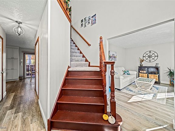 Welcome to this well-maintained four-bedroom colonial featuring a grand two-story foyer with a newer chandelier. The first floor offers luxury vinyl flooring throughout the formal living, dining, laundry, eat-in kitchen, and family rooms. The updated kitchen includes stainless steel appliances, granite countertops, and a tile backsplash, and opens to a cozy family room with a gas fireplace. Upstairs, new carpeting flows through all four bedrooms, steps, and the loft. The primary suite boasts a walk-in closet with custom shelving, an ensuite with a ceramic tile shower, dual vanities, a soaking tub, and ceramic tile flooring. All the bathrooms have fresh paint, new mirrors, and updated lighting. The finished basement provides a spacious recreation room, a storage closet, and a play closet. Come and relax on your private wood deck, patio, a firepit area, and outdoor bar with a built-in smokehouse, storage, and electricity.