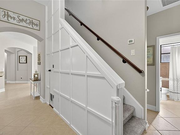 Welcome to Daniel’s Preserve, an intimate gated community inside the larger Gateway community. This beautifully appointed and updated home features a long lake view from the refreshing pool/spa and covered lanai. Enter through a grand foyer into the abundant living space, giving center stage to a generous chef’s kitchen, volume ceilings, and a welcoming electric fireplace for cozy comfort. White shaker cabinetry, stainless steel appliances, a center island, granite countertops, and pantry are all highlights of the ample kitchen that overlooks the comfortable living room and expansive dining room. Overlooking the lanai, the primary ensuite bedroom with walk-in closet offers an expanded area for use as an office space or reading nook to cozy up with a good book. A wall can easily be added to create a separate den or additional closet. Two more tastefully designed bedrooms (one with a walk-in closet) are located at the front of the house near the stairs. Did I mention the private cat/dog room that is built into the wall under the staircase? If you are an animal lover, this is a must-see that you didn’t even know you needed. Make your way up the stairs to find the most amazing flex room with a full bathroom and an enormous walk-in closet. Use this room as a guest bedroom, media room, game room, gym, craft room, homeschool room, or whatever your heart desires. The ideas are endless. Daniels Preserve's HOA fees are low and include cable/internet, gate security, irrigation and amenities (play area and picnic area). No flood insurance is required here and is within close proximity to an abundance of shopping, dining, sports, golf, beaches, and all that Southwest Florida offers. Gateway, as a whole, has several amenities for all to share. Gateway Commons Pool has a heated pool that is 25 meters long with a lap lane, as well as a wading pool. Gateway Neighborhood Park features a basketball court, sand volleyball, and a playground. There are also many walking and biking paths throughout Gateway. Gateway Dog Park is available via application with a fee and is fenced to separate large and small dogs. Gateway Golf and Country Club is an optional perk and has several membership options from which to choose. Be sure to check out the attached virtual video and 3D tour of the home. Floorplans and Disclosures located in the supplements section of this listing. Don’t let this one pass you by – make the appointment and let’s make this home yours. Agents, See Remarks.