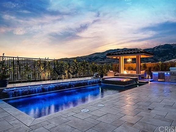 This extensively updated beautifully designed Toll Brothers VIEW home offers 5 bedrooms, 5 baths, office and a powder room for guests. Upon entering the towering circular two story foyer opens to the dining room, great room, and kitchen. The gourmet kitchen features elegant cabinets wrapped around a large island , stainless steel appliances, updated Quartz countertops, and walk-pantry. A huge expansive sliding glass door opens up to the entire outdoor living space where you can relax by the outdoor fireplace while enjoying the panoramic views! The 2nd floor features a large loft area with custom cabinetry. The master suite showcases numerous windows and a lavish master bath with an eye-catching garden tub, dual entry oversize Marble stone shower with double bench seating, Rain & dual shower heads, complimented by dual walk-in closets. The master bedroom features a luxurious spa bath and opens into an outdoor suite deck for a relaxing retreat while enjoying the sunset views! The updated designer backyard features black bottom Pebble tech, updated custom lighting, digital controls, BBQ, and custom build Fire-pit entertainment area. Additional features include: interior & exterior custom lighting, wood floors throughout, extensive stone work on the exterior.