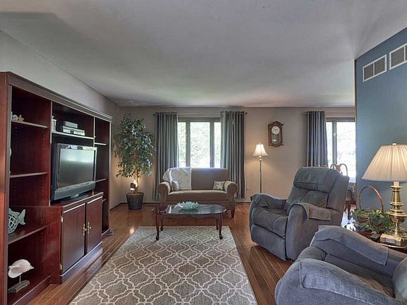 Beautiful, brick split level. 3 bedrooms, 2 full baths with a long driveway to 2.5 detached garage. Large, well kept fenced yard. Great curb appeal. Master bedroom with 3 closets. Landing upstairs could be office space. Spacious bathroom. 2 year old, oak hardwood in eat-in kitchen, living room, & dining room. Patio off kitchen. Large family room in the lower level, full bath, & walk-out laundry room. Roof & siding 1 year old. 2013 a/c, 2017 furnace, 2016 humidifier. Great location! Close to grade school & junior high school, park & baseball fields, library, community pool, & shopping. Well maintained home. Low taxes! Show & sell today!