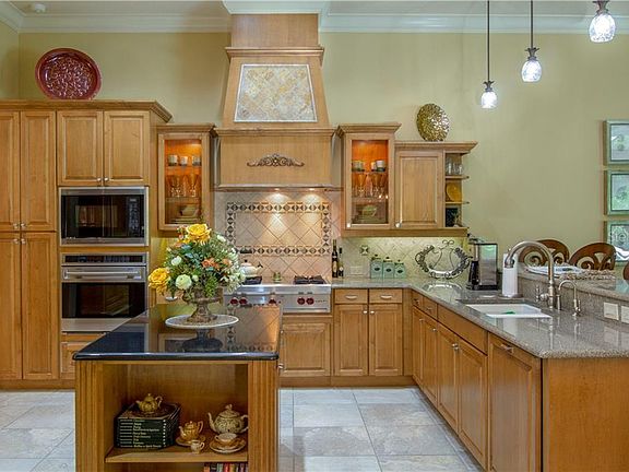 - Interior Features: Ceiling Fans(s), Eating Space In Kitchen, High Ceiling(s), Open Floorplan, Split Bedroom, Walk-In Closet(s), Crown Molding, Solid Wood Cabinets, Kitchen/Family Room Combo, Solid Surface Counters, Built in Features, Central Vaccum, Tray Ceiling(s)