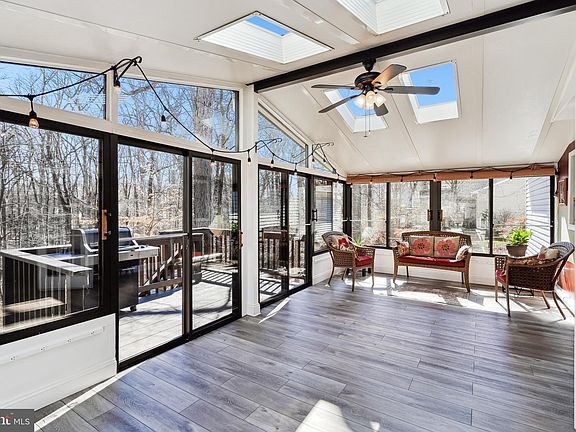 Delightfully refreshed Colonial in the heart of Lake Ridge. Many enhancements including upgraded kitchen, baths, and flooring throughout. 4 BR, 3.5 BA. A welcoming and flexible floorplan includes spaces for living, dining, recreation and more! A four-seasons sunroom features skylights and huge windows overlooking majestic trees, plus a gorgeous gas log fireplace and mini-split for year-round heating and cooling. A large two-car garage includes super-quiet openers. Close to commuter options, shopping, dining, schools, pools, and all that Lake Ridge has to offer.