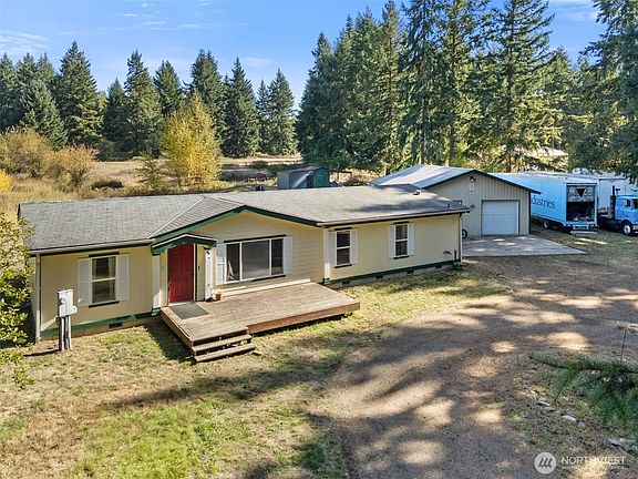 Country Comfort on 3.36 acres in Yelm! Spacious 3-bedroom, 2-bath manufactured home, offering 1,620 sq. ft. with a split-bedroom floor plan, large kitchen with tons of storage, spacious living room and open concept dining area. Primary bedroom includes extra space for office or sitting area, plus a corner soaking tub in the primary bathroom. Enjoy year-round comfort with a heat pump and relax on the two large decks—front and back, perfect for soaking in the peaceful setting. The 28x36 propane-heated shop provides plenty of room for storage, hobbies, or projects. Lot includes RV parking with hook-ups. With room to set up for animals, this property offers space, functionality, and country charm, all ready for its new owner!