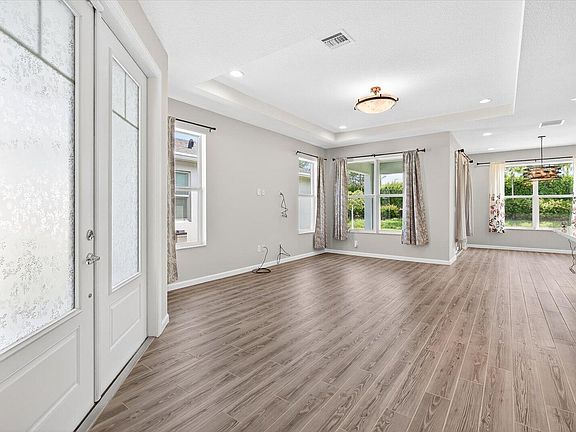 Don't miss this incredible opportunity to own a newer Lilac model home in the highly desirable gated community of Manderlie at TRADITION! With its modern Coastal design and inviting curb appeal, this home is built for both comfort and style. Enjoy peace of mind with impact-resistant windows and doors and cook like a pro in the gourmet kitchen featuring stainless steel appliances, a natural gas range, ''White Sand'' granite countertops, 42'' upper cabinets, and upgraded plank tile flooring. The open layout boasts soaring 9'4'' ceilings and a tray ceiling in the Great Room, creating a bright and airy living space. Relax on the spacious front porch or unwind on the covered lanai. With countless upgrades throughout, this home truly stands out--come see it for yourself today!