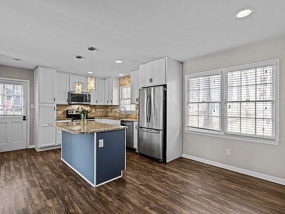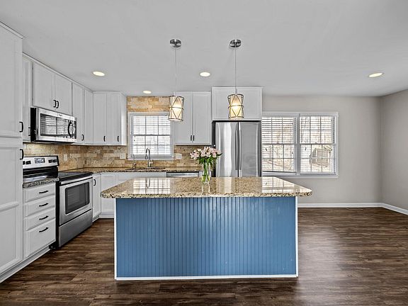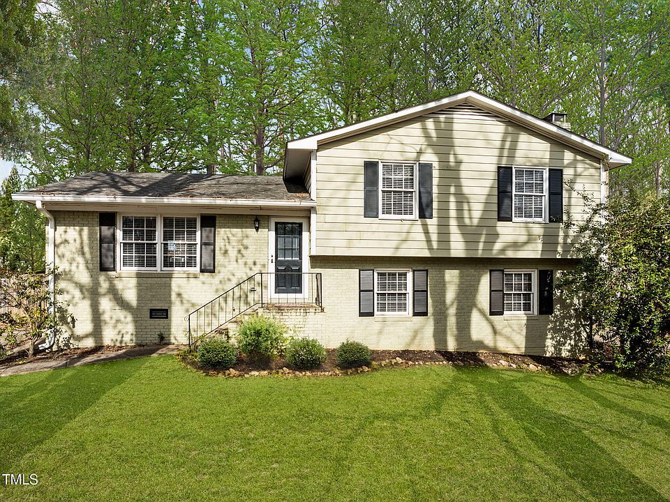 This beautifully renovated 4 bed/3 bath home features a 2023 HVAC system, no HOA, luxury vinyl plank flooris upstairs and downstairs, it's situated on a corner lot right beside Cary Greenway, and a fenced-in yard. The kitchen boasts a large island with bar seating, granite countertops, extended cabinetry to the ceiling, and stainless steel appliances. Each of the four bedrooms includes a ceiling fan for added comfort, and all three bathrooms are fully updated with contemporary vanities and tiled showers. One of the home's standout features is the expansive den, complete with a cozy wood-burning fireplace and plenty of room for a home office, gym, or entertainment space. Enjoy the home's prime location offering easy access to shopping, dining, and recreation — including Fenton, Crossroads, and the Triangle Aquatic Center.