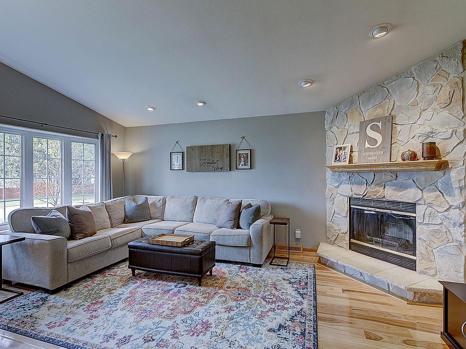 The wait is over. Your home sweet home is here! Conveniently located near Drexel Town Square & Oak Leaf Trail, this adorable ranch is ready for a new, loving owner. Covered front porch invites you into this open concept design. Cozy up to a crackling fire in the floor to ceiling stone NFP in Great Room w/ vaulted ceiling & wide plank HWF. Bright & cheery Kitchen offers SS appliances, eat-in Dinette and easy access to freshly stained deck. Spacious rooms w/ newer carpet. MBR comfortably fits a king bed & has its own full bath. Finished lower level provides versatility for a movie/game night, home office option & workout room. You will be sold when you see the fenced-in backyard & the privacy the farmland creates. Recent updates include: Carpet ('18), Dishwasher ('17), Furnace & A/C ('14).