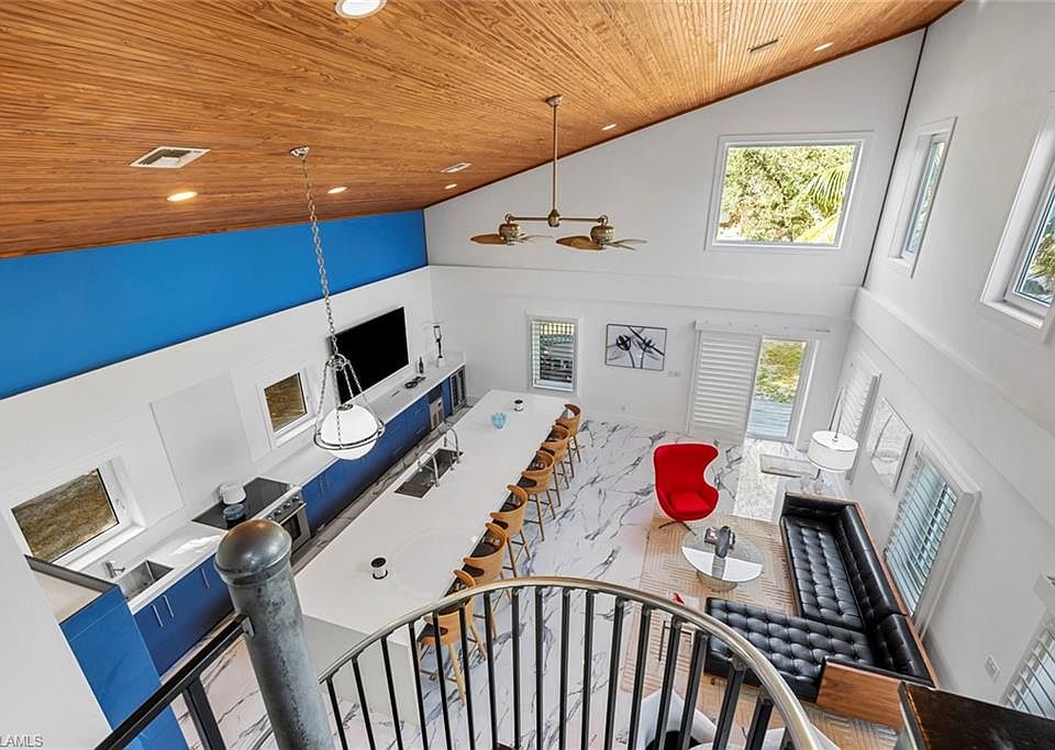 You must see this gorgeous/cool contemporary party home! The home has been completely remodeled and designed for a chef with an 18ft long island, 5ft long kitchen sink, appliances, flooring, kitchen cabinets, Quartz countertop, new paint, new doors, new trim, new washer & dryer, wine cooler, 75" wall mounted TV, commercial ice maker, commercial Fridge/freezer and a commercial stove. This awesome home is just minutes away from 5th Ave, the marina & downtown Naples. There's also an observation deck on the outside 3rd floor that can be used for meditation. This home has never been lived in the since remodel.