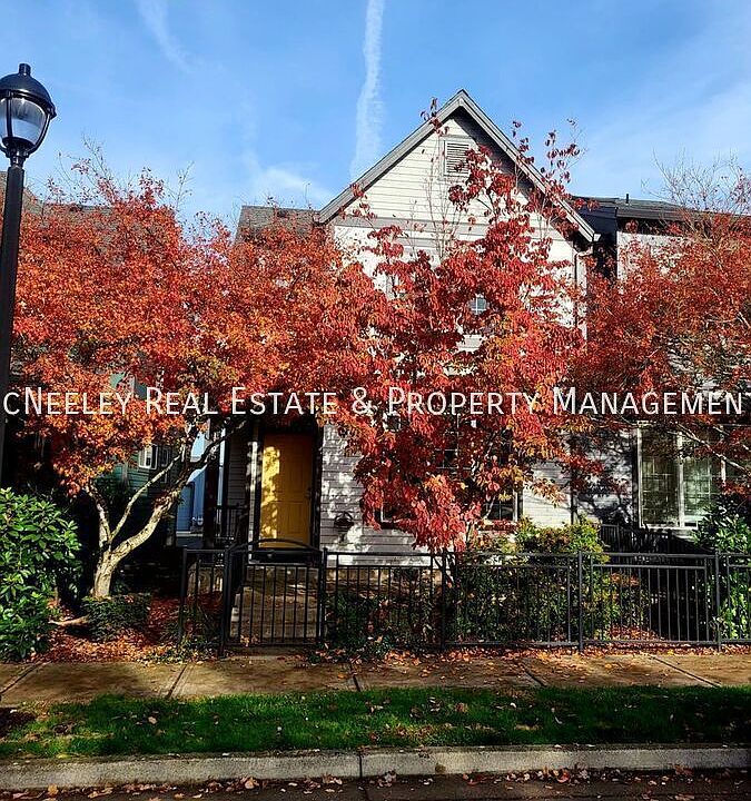 This tranquil end unit Town Home offers private gated patio and covered front porch. Entry features laminated wood floors which opens to the great room with large windows and cozy gas fireplace. The gourmet kitchen offers maple cabinetry, tile counters, gas appliances, built-in microwave, walk-in pantry, and laminate floors that extend into the adjacent dining area. The main floor includes half bath and 2-car garage. Upper level has loft/office space, and laundry room with washer & dryer. The primary ensuite has walk-in closet, double sinks, walk-in shower, and water closet. The upstairs also includes 2 additional Bedrooms (1 w/vaulted ceiling & walk-in closet) share hall BA w/shower/tub. HOA includes pool, hot tub, parks, rec center, exterior maintenance & internet. Awesome location in the Arbor Roses Community moments to walking trails, Shute Park, Library, MAX, shopping & dining. Directions: TV HWY south on 11th, East on Leander ST.