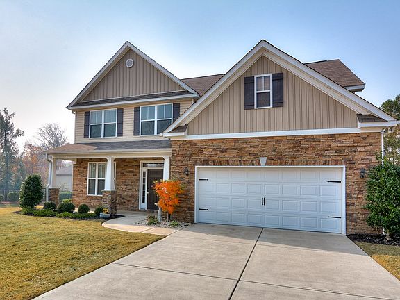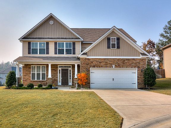 4 bed, 3 bath home in highly sought after Canterbury Farms! Enjoy the privacy of a .29 acre, corner lot in a cul-de-sac. Incredible floor plan that includes a bedroom and full bath on the main floor, perfect for an in-law suite or guest room. No detail was left out of this home! 2-story foyer, wrought iron spindle staircase, arched entries, formal dining room, large great room with beautiful, coffered ceiling and tiled fireplace. Kitchen features hardwood flooring, granite counters, stainless steel appliances, bar seating, eat-in area, pantry and stone tiled backsplash. Upstairs you'll find a spacious loft/open bonus room, laundry room, 2 bedrooms, a full bath and the owner's suite. Owner's suite offers vaulted ceiling and the ensuite you've been looking for; tiled shower, garden tub, double vanity and large closet. Fenced-in backyard with patio is an open canvas to create your ideal outdoor space.