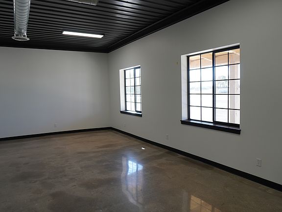 Modern office space available for lease featuring polished concrete floors, neutral finishes, and ample natural light through large, energy-efficient windows. The space offers a clean, contemporary design ideal for professional or administrative use.