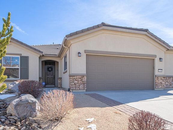 Breathtaking Mountain Views Await You! Welcome to your personal oasis nestled in the serene and picturesque community of Sierra Canyon, where luxury meets lifestyle! This stunning Northstar model, boasting 1,618 sq ft of thoughtfully designed living space, is a true gem that perfectly combines comfort, elegance, and functionality. Great room with built-in speakers and crown moldings opens to gourmet kitchen featuring granite counters, stainless appliances, and ample cabinetry and pantry., Step outside to your private patio and soak in the panoramic mountain views that will take your breath away. This tranquil outdoor space is perfect for morning coffee, evening barbecues, or simply unwinding after a long day. Complete with covered patio, built-in BBQ, gas firepit area with seating, water feature and beautiful low maintenance landscaping. 2 bedrooms and 2 full baths and whether you work from home or need a space for creative projects, there is an airy office with elegant custom built-ins that is the perfect setting to inspire productivity and focus. Primary bedroom has a bay window sitting area, spacious bath and extra large walk-in closet with custom built-in. Tons of storage and cabinets in laundry and garage. Washer, dryer and refrigerator remain with home. Living in Somersett's Sierra Canyon means enjoying a lifestyle filled with activities and amenities. Take advantage of the resort-style clubhouse, fitness center, swimming pool, and tennis courts. Explore the scenic walking trails, play a round of golf, or engage in social events with friendly neighbors. The community offers an ideal blend of tranquility and vibrant social life.