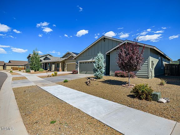 Do not miss this highly upgraded, rare single level floorplan in the newly developed community of Flagstaff Meadows. Situated on a prime lot backing a community walking trail, views of the forest and a short drive to downtown Flagstaff, this location can't be beat. This extremely well cared for home features upgrades galore with 9 foot ceilings, 8 foot custom doors, wood tile and luxe carpet. The open floorplan hosts a spacious living room with a gas fireplace, a large kitchen with granite counter tops, upgraded coffee cabinet package, oversized island and stainless appliances. The primary suite features an ensuite with a tiled walk-in shower, spacious walk-in closet and dual sink vanity. The guest bedrooms are spacious and inviting. Enjoy mountain living in the fully landscaped backyard!