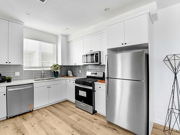 Move-In Special: 1 Month Free on a 18-Month Lease! Experience modern luxury living in these beautifully designed 4-bedroom,3.5-bathroom townhomes near the heart of North Hollywood! Each home offers an open and contemporary layout with spacious kitchens, high-end finishes, and balconies. The modern kitchen is equipped with stainless steel appliances. Enjoy high ceilings, designer bathroom tiles, ample closet space, in-unit washer and dryer, and central A/C and heating for year-round comfort. This modern tri-level home offers a spacious and functional layout. The ground floor features a one-car garage along with a primary bedroom complete with its own private bathroom and walk-in closet perfect for guests or multi-generational living. The main level boasts an open-concept kitchen, living, and dining area, designed for entertaining and everyday comfort. Enjoy fresh air and relaxation on the private balcony just off the living room. Upstairs on the third level, you'll find three bedrooms, including a second primary suite with its own ensuite bathroom. The remaining two bedrooms share a full bathroom, providing both convenience and privacy for family or guests. Residents also benefit from two parking spots. One in a private garage attached to the house and the second one is in front of the unit. and a super-prime location just minutes from top local destinations, including NoHo West, Trader Joe's, 24 Hour Fitness, Boba Time, Brickyard Pub, The Federal, In-N-Out, and Starbucks. Easy access to the 101, 170, and 405 freeways, as well as the Metro Orange Line, makes commuting throughout Los Angeles a breeze. Highlights: Modern 4 bed / 3.5 bath layout Spacious kitchen and living areas Designer finishes throughout Central A/C + heat 2-car parking spots Separate utilities 12-month lease term Come see for yourself what makes this modern community the perfect place to call home!