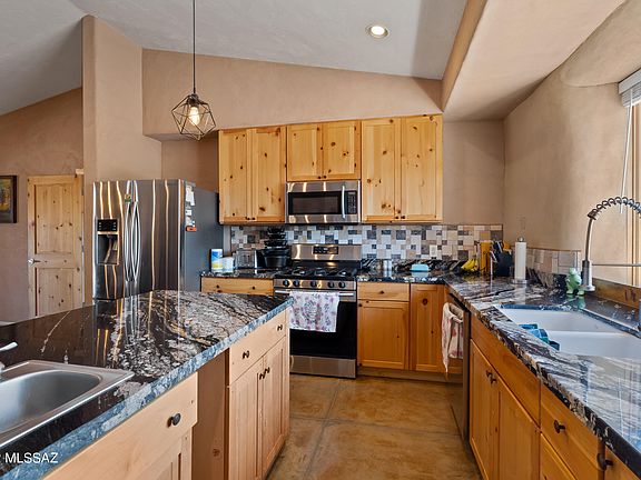 4 plus acres of lush desert vegetation neighboring the Saguaro National Park. Environmental friendly construction, Energy efficient straw bale home with 24'' thick walls, metal roof with R54 rated insulation, 2 zone radiant floor heating, stained concrete floors. Custom features throughout include the recently updated kitchen with vegetable sink in the island, granite counter top, gas range, pantry, solid wood doors, high end wood windows that are metal clad on the outside, Covered flagstone patio, covered vegetable garden, Home has fire sprinklers, 2500 gal rain water container, 1100 gal. irrigation water container, RV space, 2 RV dumps, 2- 220v hookups, 30 x 60 x 16' tall shop with 14' doors and 200 amp service, Detached 2 car carport, 5-Shared well, 52'' x 24'' concrete pad, Storage sh
