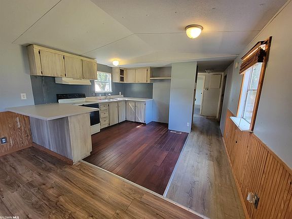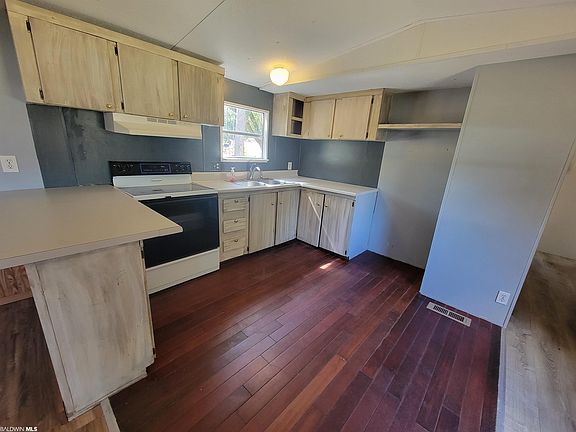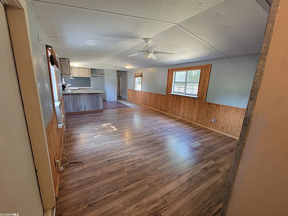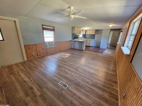 Single mobile home centrally located in Foley, yet in a very secluded and quiet street. Ideally located close to the Beach Express, OWA, the beach, Tanger Outlets, restaurants, Downtown, and all the amenities that Foley offers. 2 Bedrooms and 2 Bathrooms on a fenced in beautiful large, almost 1/2 acre, leveled lot in a great location!!! The home has 2 window a/c units, no central a/c. No owner financing. All information deemed reliable, buyer to confirm all measurements and information.
