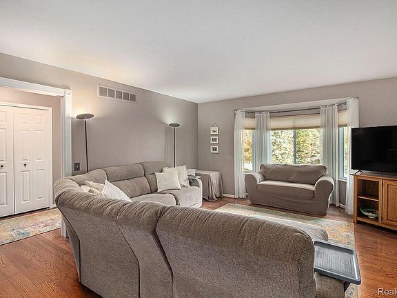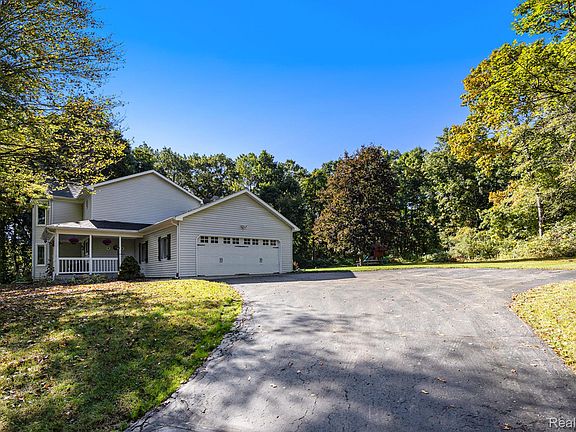 Perfectly sited atop a gentle hill on 2.5 picturesque acres, this timeless home offers breathtaking woodland views from every angle. An impressive tree-lined approach leads to the charming, covered porch & a low maintenance exterior. The thoughtfully designed floor plan balances comfort and elegance, ideal for everyday living and entertaining alike. Enter the foyer which exudes warmth with its inviting ambiance. The heart of the home centers on the stunning, remodeled granite kitchen with stainless steel appliances, loads of rich cabinetry, and breakfast bar seating. An adjoining dining area has a sliding glass door to decking. Hardwood floors flow throughout the spacious great room with a cozy gas fireplace framed by a classic mantle, while large windows invite in natural light and picturesque views of the surrounding property. Upstairs, three inviting bedrooms and an updated bath include a tranquil primary suite with bay window seating overlooking the wooded backdrop. The lower level extends the living area and offers an additional & recently added full bath, laundry, and storage space. Step outside to an expansive deck overlooking the backyard oasis—complete with a sprawling deck, gazebo, and firepit—all surrounded by mature trees for privacy and serenity. A separate drive leads to an epic 30 x 50 four-car garage w/ heat & electricity, perfect for car enthusiasts, hobbyists, or those needing additional workspace and storage. Every detail has been maintained with pride, ensuring a move-in-ready experience for the next fortunate owner. Some of the other creature comforts include a whole house generator & a new roof on the pole barn. Located just moments from Davisburg Elementary, Springfield Oaks County Park, and the Springfield Township Library, this property combines peaceful country living with modern convenience. Experience the warmth, natural beauty, and understated sophistication that define this turnkey package with no HOA! IDRBNG