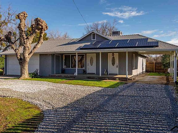 OWNED SOLAR!! 7.68kw system with a 20yr warranty and 2 Tesla power walls with a 10yr warranty! 2 bedrooms and 2 bathrooms plus Bonus room! 1196sqft. Kitchen includes a smooth surface stove, new range hood, new paint. Brand NEW dual fuel heat and air system! NEW hot water tank and instant hot water at point of use. Fresh crushed gravel in drive way. Plenty of room for RV and toy parking. Large carport on right side of home. Lot is 1.61 acres with fenced back yard on automatic sprinklers. Back lot includes irripods for irrigation, Ready for growing season. This one will go fast, dont wait to look.