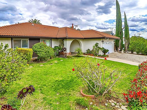 This completely remodeled single story home features 2,102 square feet of open interior living space, 4 bedrooms, 2 full bathrooms, on a huge 11,819 square foot lot. Features include a custom art glass double door entry, living room with fireplace, dining area with large windows and family room with vaulted ceiling. The completely remodeled kitchen features granite countertops, eat in bar area with built in wine cabinet, upgraded cabinets, oversized double stainless sinks with upgraded faucet, stainless appliances, decorative sconces and bay window. The huge master suite features an arched entry into the master bath, soaking tub, his/her sinks, vanity area, large shower, a large closet with mirrored closet doors, and a large walk in closet with arched entry and custom closet organizers. Other interior features include 3 secondary bedrooms, completely upgraded second bathroom, professionally built 8x11 music room, decorative chair rail, crown molding, custom window coverings, recessed lighting, security system and pulse cameras. The retreat-like back yard features a salt water pool/spa, outdoor kitchen area that includes stained concrete countertop, Viking professional grill with true sear, built in large Big Green Egg and sink. A covered outdoor entertainers area with TV, custom surround sound audio system, multiple infrared patio heaters, recessed lighting and ceiling fan. Other outdoor features include a custom concrete fire pit area with seating area and artificial grass.