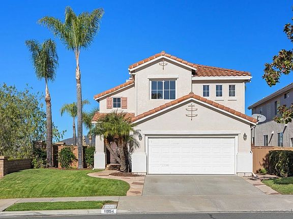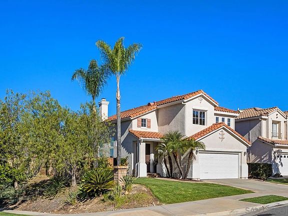 Welcome to this beautifully upgraded corner-lot home in the highly desirable Sabre Springs community. This stunning residence features 3 bedrooms + loft, 2.5 bathrooms, and 2,036 sq. ft. of living space, all enhanced by incredible panoramic views. Pride of ownership is evident throughout every thoughtfully remodeled space. The chef’s kitchen has been completely updated with a large sit-up island, custom cabinetry, built-in Sub-Zero refrigerator and wine refrigerator, granite countertops, glass tile backsplash, stainless steel appliances, and an impressive Wolf 8-burner gas range with double oven. Additional features include slow-close cabinets and a built-in microwave. The spacious primary suite offers vaulted ceilings, crown molding, a ceiling fan, mirrored closed doors and walk-in closet with built-ins from California Closets, and a beautifully upgraded primary bath with double sinks, a walk-in shower with glass door, and a separate soaking tub. The home’s elegant dining room includes custom built-in cabinets with frosted glass doors, granite counters, and a custom built-in mirror. Step outside to your private entertainer’s backyard, complete with sweeping views, a sparkling pool and jacuzzi, and a built-in BBQ with barstool seating perfect for hosting gatherings or relaxing in your own retreat. Hall bathroom as double sinks, tub/shower, and wainscoting. Secondary bedrooms with ceiling fans, crown molding, and California Closets built-ins. Newer heating and A/C system, including updated ducting and newer attic insulation.