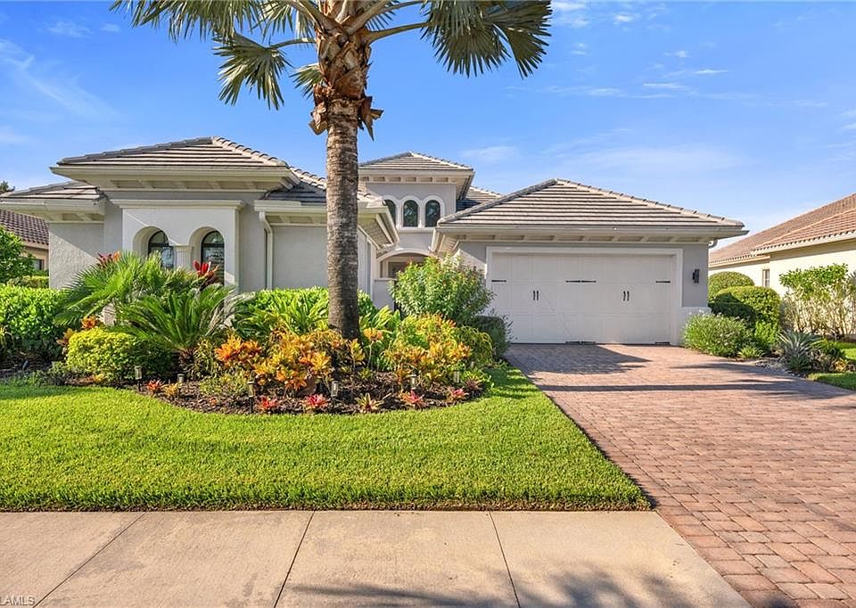 FULL GOLF MEMBERSHIP INCLUDED. Experience the ultimate in luxury living in TwinEagles. Featuring a highly desirable Southern exposure with serene golf course and lake views, this beautifully appointed residence offers 2,905 square feet of elegant living space. Designed with a spacious great room floor plan, the home includes 2 bedrooms, a den, separate sitting room, 2.5 baths, and a 2-car garage, creating the perfect balance of comfort and sophistication. This thoughtfully designed great room floor plan flows effortlessly into a chef-inspired kitchen with oversized island & prep sink, built-in Monogram-level appliances and custom backsplash. Entertain with ease thanks to another full wet bar in the sitting room, complete with sink and wine cooler. Entering from the great room the lanai and pool area are a true outdoor oasis, featuring a spa, stunning picture window screen, colored lighting in the pool and cage, a full outdoor kitchen with grill, sink, and refrigerator, with custom wood ceiling. A Storm Smart electric screen offers convenience and protection while allowing you to enjoy year-round outdoor living. The home is filled with thoughtful upgrades including many impressive custom-crafted ceilings, crown moldings, wainscoting in the dining room, updated powder bath, plantation shutters, and custom shades. Additional features include a Lyric sound system in the home and lanai, a custom waterfall feature at the front entry, new flooring throughout the home, freshly painted exterior and interior, new flat tile roof in 2024, custom closets, garage mini-split A/C, & central vacuum. Experience the rare opportunity to embrace an upscale lifestyle in one of Naples' most exclusive communities. Recently enhanced by a $30 million renovation, the community features a beautifully updated clubhouse, exceptional fine dining, state-of-the-art fitness facilities, and two championship 18-hole golf courses. Whether you're seeking a tranquil retreat, an active and vibrant lifestyle, or simply a refined living experience, this home offers it all.