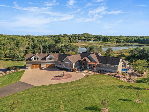 A once-in-a-lifetime opportunity to have everything you wanted all in one unbelievable estate. This amazing estate boasts 20 acres of land on Mann Lake in the highly sought-after Mahtomedi School District. The 5-bed, 5-bath home includes over 8,000 sq feet of meticulous entertaining space that walks out to the in-ground saltwater heated pool, outdoor grilling area, and hot tub. The pristine 12,000 sq ft of accessory buildings is a MUST SEE including an archery range, hockey rink shooting area with radar, 2 horse stables with access to the exterior fenced-in portion of the yard, golf simulator, huge bar, and an exercise room that mimics a high-end fitness club with a swim spa, sauna, and 2 bathrooms. Almost the entire accessory building has epoxy floors and Wirsbo in-floor heat. Enjoy the acreage from your decks, screen porches, and patios.