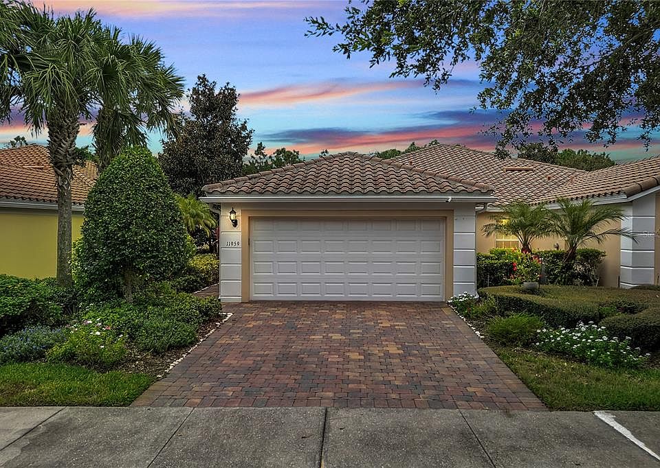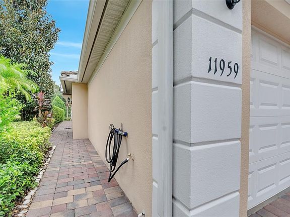 One or more photo(s) has been virtually staged. This beautifully updated Carrington Model features a perfect blend of modern touches and classic style throughout its open layout. Step inside to discover an inviting space where natural light streams in through windows adorned with plantation shutters, adding both elegance and privacy. With a two-bedroom plus den floor plan, this home offers the flexibility of a dedicated office that can easily convert into a third bedroom, ideal for guests or multi-purpose living. Relax in the combined living and dining area, designed for both everyday comfort and effortless entertaining. The seamless flow creates a spacious, airy environment that highlights every detail. The primary suite serves as your personal retreat, complete with a generous walk-in closet and a private bathroom. A second full bathroom provides convenience for family and visitors alike. At the heart of the home, the kitchen is both functional and beautiful, featuring granite countertops, a stylish backsplash, and brand-new stainless steel appliances, including a new dishwasher, disposal, and stove (January 2025). A built-in water filter ensures you always have access to fresh, clean water. Everyday living is enhanced by thoughtful features such as all-new light fixtures equipped with dimmer switches and a laundry room complete with built-in cabinetry for effortless organization. The layout extends seamlessly to the outdoors, where a screened lanai with a ceiling fan offers a perfect setting to relax or entertain while enjoying Florida’s breezes. An attached two-car garage adds practicality, while VillageWalk at Lake Nona provides an active, resort-style community with incredible amenities. Walkable bridges and scenic canals wind through the neighborhood, connecting residents to various on-site conveniences, including a deli, gas station, and vibrant town center. Outdoor enthusiasts will appreciate lighted walking and biking trails, sports courts, and heated swimming pools, while the 24-hour fitness center supports an active lifestyle. Just minutes away is Lake Nona Town Center, a dynamic 100-acre open-air destination featuring public art displays, upscale shopping, and hotels like the iconic Lake Nona Wave Hotel. Boxi Park is a lively, family and dog friendly venue offering a mix of restaurants and bars, beach volleyball courts, and a live entertainment stage. Families benefit from access to top rated schools, while the community’s prime location near Medical City and Orlando International Airport makes travel seamless. World famous attractions such as Disney, SeaWorld, and Universal Studios are just a short drive away. HOA fees cover lawn care, high-speed internet, and cable, ensuring truly hassle-free living. Don’t miss your chance to make 11959 Fiore Dr your new home!