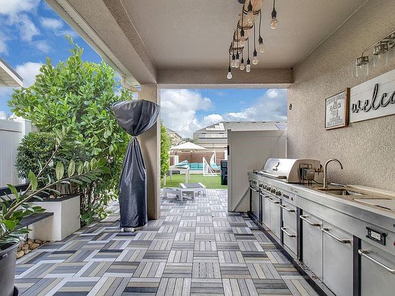 Pvc-fenced yardBeautiful courtyardOutdoor kitchenCovered porchStylish staircaseCustom accent wallsWalk-in closet