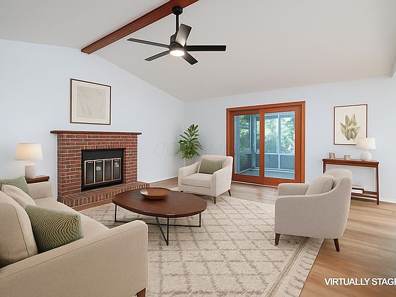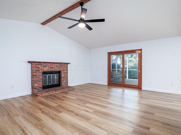 Welcome to 1196 Daylight Drive, a charming ranch home in the desirable Stony Ridge community offering 1,472 sq ft of thoughtfully designed living space. This well-maintained home features 3 bedrooms, 2 full baths, a first-floor primary suite, and convenient first-floor laundry. The spacious living room boasts vaulted ceilings with a wood beam, a cozy brick fireplace, and double doors that open to a screened porch. The open floor plan is filled with modern updates, including a remodeled kitchen with new countertops, sink, appliances, and lighting, as well as LVT flooring throughout. The basement provides flexible space for storage, hobbies, or a creative workspace, while the screened porch offers the perfect spot to enjoy your morning coffee or relax in the evenings. Recent updates include a water heater, radon system, remodeled baths, new fixtures, and tree removal with professional trimming, giving buyers peace of mind and move-in readiness. With its welcoming curb appeal and brick front, this home is waiting on your personal landscaping touches. The prime location near shopping and restaurants, makes this home a combination of comfort, style, and convenience in one package.