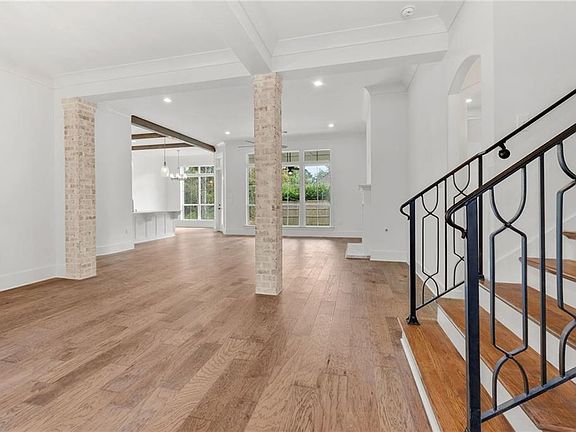 STUNNING NEW CONSTRUCTION w/Great Open Floor Plan! 2,694 SqFt Living - 4 generous bedrooms & 3 full baths -2 bedrooms down & 2 bedrooms up! Beautiful Living Area w/custom curved wall feature, Dining room w/brick columns, gas and/or wood burning fireplace, custom cabinets w/soft close drawers, quartz counters, farmhouse sink, TOP OF THE LINE GE CAFE Appliances, Carrera counters in baths, lg 2-car garage, security system, tankless water heater, low maintenance exterior, FLOOD ZONE C. Close to shopping!