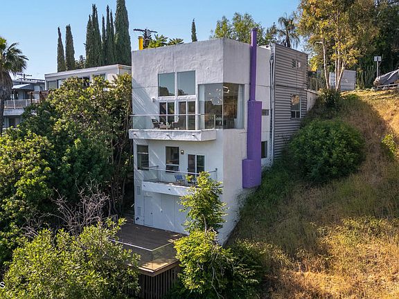CONTEMPORARY ARTIST'S RETREAT!! VIEWS!! The panoramic views of city lights with Catalina Island in the distance will take your breath away!! This delightful architecturally designed contemporary sits at the top of sought-after Montecito Heights. Completed in 2008, the house offers wonderful style, light, and architectural details. Step down from the formal entry foyer to the oversize great room with high ceilings, walls of glass, corner windows, and an oversize skylight!! Sliding glass panels open to a large balcony. Flexible upstairs space could be an office nook. Incredible light and cross ventilation!! The open kitchen offers ample cabinetry, windows above the sink, and an island with breakfast bar. The main living level also includes a bedroom with a separate sitting room and a beautifully appointed 3/4 bath. The lower level is devoted to an indulgent primary suite with spa-like ensuite bath, fireplace, large balcony, and incredible views. Amenities include central AC, maple flooring throughout, and a spacious laundry room. An attached two car garage and two driveway parking spaces add to the convenience!! The Montecito Heights location is close to a vast array of dining, entertainment, and recreational options nearby. You'll be a 10-minute drive from Highland Park, DTLA, and Pasadena and mere minutes from Antigua Coffee, 1802 Roasters, Ernest Debs Park, and Dodger Stadium. Come take a tour while it's still available!!